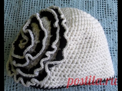 Шапка крючком " Романтика" часть 2 (вязание цветка) knitted cap (Шапка #2)