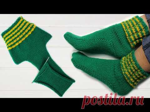 САМЫЕ простые носки на ДВУХ спицах. Без кругового вязания.