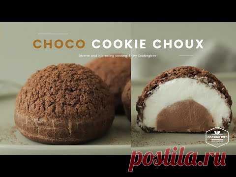 초코 쿠키슈 만들기٩(ˊᗜˋ*)و : Choco Cookie Choux, Crunchy Cream Puff Recipe - Cooking tree 쿠킹트리*Cooking ASMR