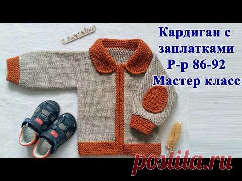 Кардиган с заплатками/ Кардиган спицами/ Кардиган для мальчика