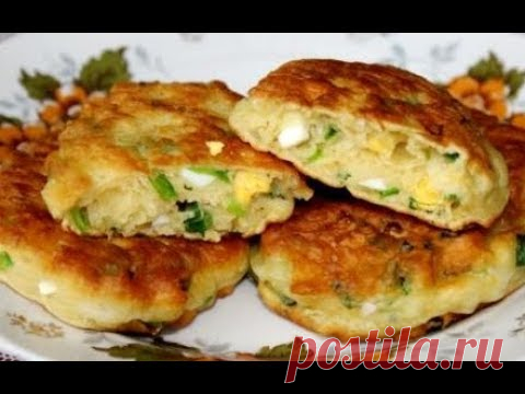 Ленивые пирожки с луком и яйцом или оладьи с начинкой! Вкусный завтрак за 10 минут.