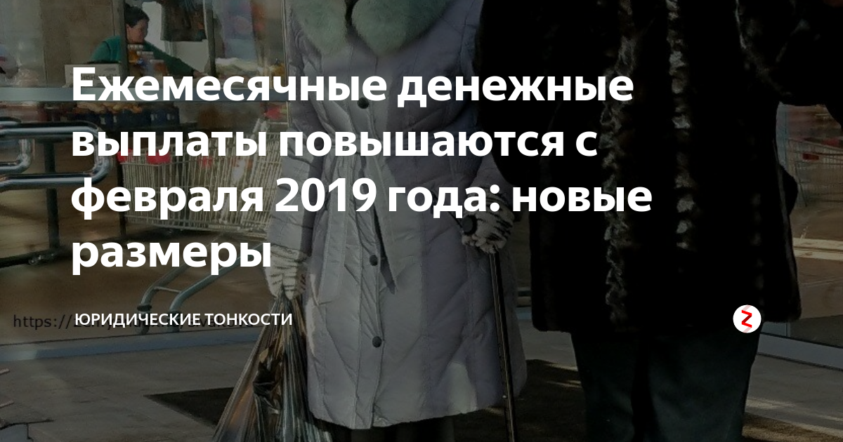 Ежемесячные денежные выплаты повышаются с февраля 2019 года: новые размеры Представляю новые размеры выплат по отдельным категориям льготников.