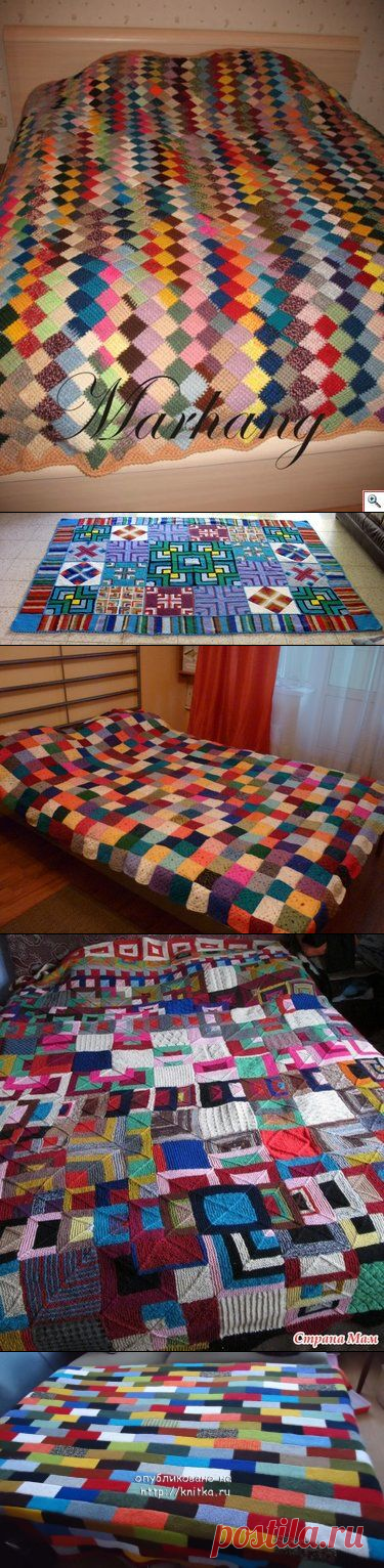 'Вяжем плед из остатков пряжи квадратами - Вязание кофт карди' — card from user akulinapetrova in Yandex.Collections
