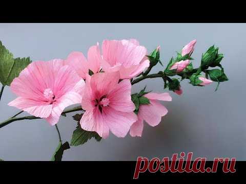 ABC TV | Как сделать бумажный цветок Лаватера Роза из крепированной бумаги - учебник по ремеслу