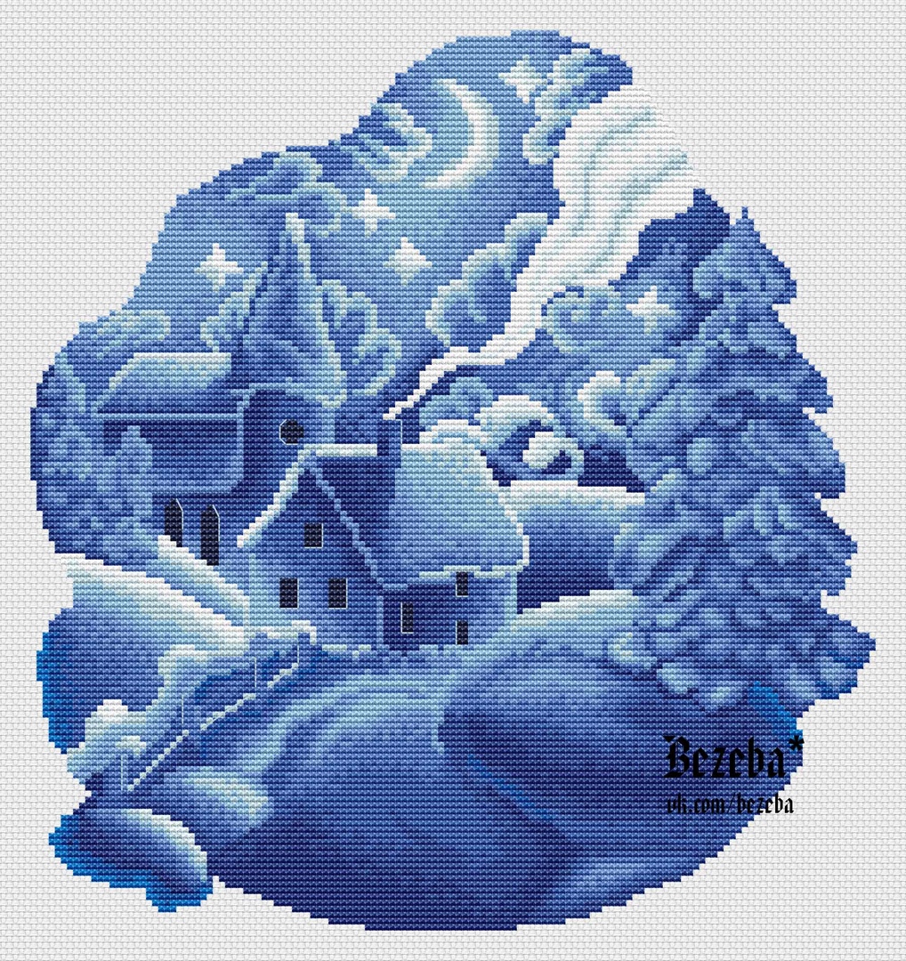 #Авторские_схемы@clubrucodelnic #Монохром@clubrucodelnic #Пейзажи@clubrucodelnic #Домики@clubrucodelnic Зимняя сказка Дизайнер : Гринченко Галина — https://vk.com/bezeba Схема Жмите на картинку