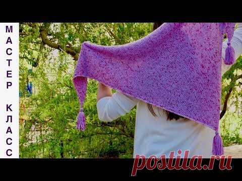БАКТУС спицами. Классический треугольный шарф из эксклюзивной пряжи от KnitCrate. КАК СВЯЗАТЬ бактус