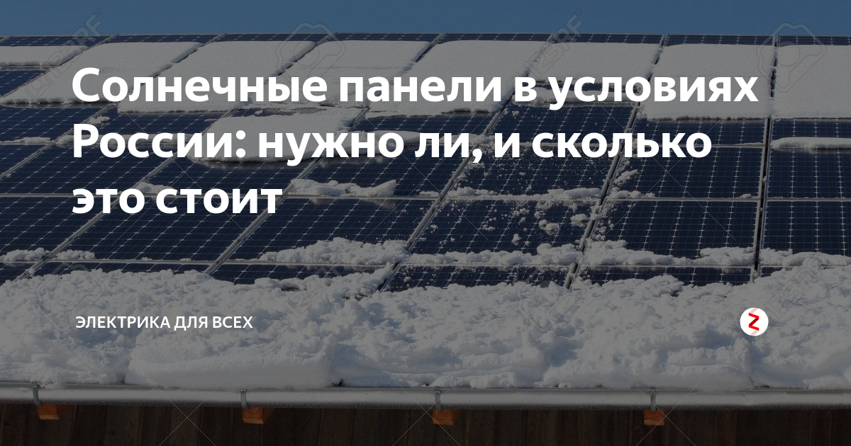 Солнечные панели в условиях России: нужно ли, и сколько это стоит Наряду с ветряными электрогенераторами, солнечные панели имеют как преимущества, так и недостатки. Главное, что нужно знать перед их установкой - в северных широтах, таких, как средняя Россия, они работают намного хуже, чем, например, в Египте. Есть ли вообще смысл браться за солнечную энергию, или это безнадёжно? Попробуем разобраться!