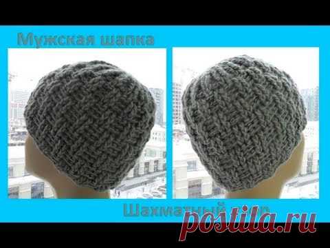 Мужская шапка шахматным узором ,вязание крючком,crochet hat (шапка №142)