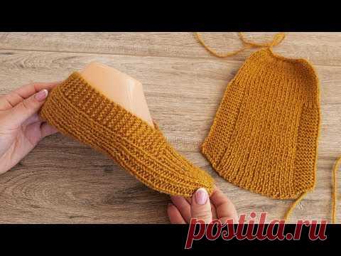 Следки спицами одним полотном «по турецки» | Easy knit slippers pattern tutorial