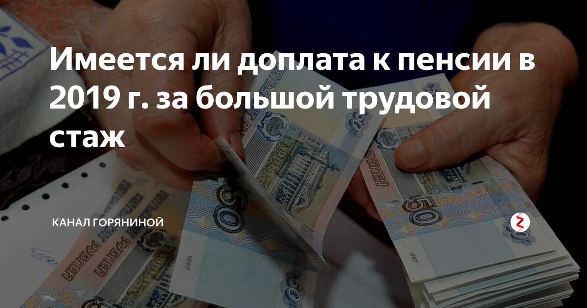 Имеется ли доплата к пенсии в 2019 г. за большой трудовой стаж В данном материале мне хочется рассказать о не менее важной теме для граждан, о доплате к пенсии за большой трудовой стаж в 2019 году.