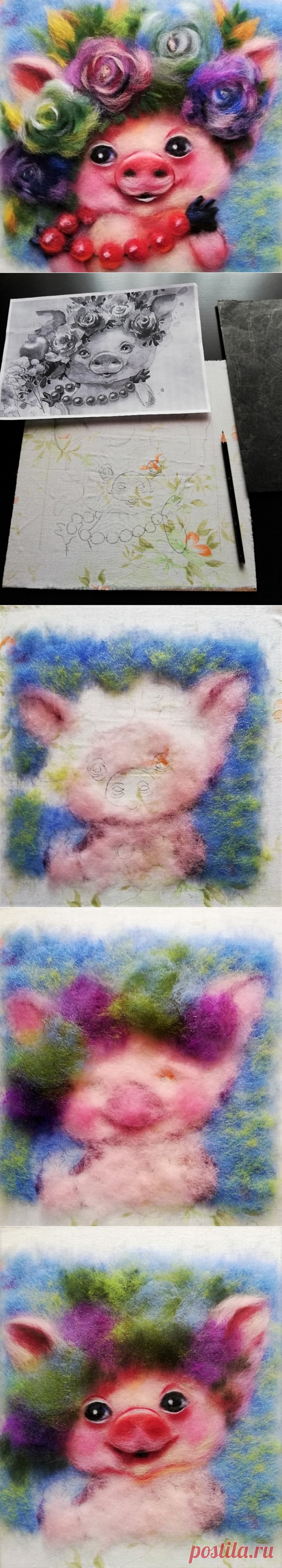 Шерстяная акварель: мастер-класс по изготовлению веселой свинки — Сделай сам, идеи для творчества - DIY Ideas