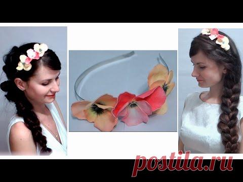 Анютины глазки из фоамирана Ободок с цветами мастер класс Headband - flowers of Pansies foam