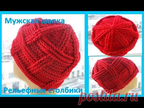 Мужская шапка" Рельефные столбики", crochet hat ( шапка №141)