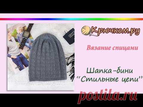 Крутая 💪 мужская шапка-бини "Стильные цепи" спицами