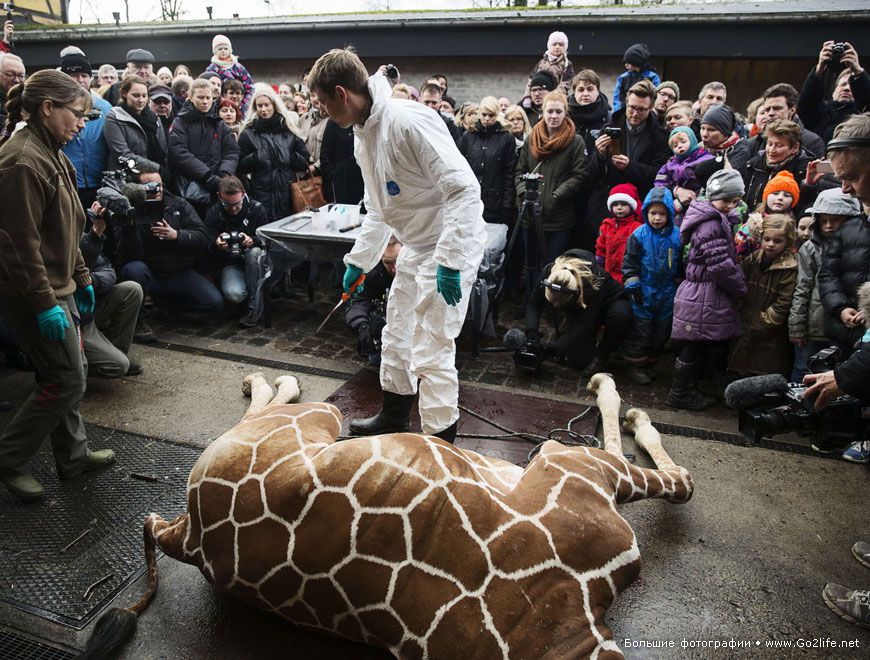 16 душераздирающих фотографий. Дания, та которая в цивилизованной Европе. Это пренеприятнейшее событие произошло 9 февраля в зоопарке Копенгагена. Администрация местного зоопарка приняла решение умертвить полуторагодовалого жирафа по кличке Мариус, который, как пишут СМИ, появился на свет в результате близкого скрещивания. Подобные не домашние животные по правилам, установленным чиновниками Евросоюза, должны быть убиты, чтобы не создавать угрозы для последующего размножения...