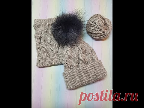 Шапка спицами узором Ложная Коса (пряжа Нако перу) Мода 2019
