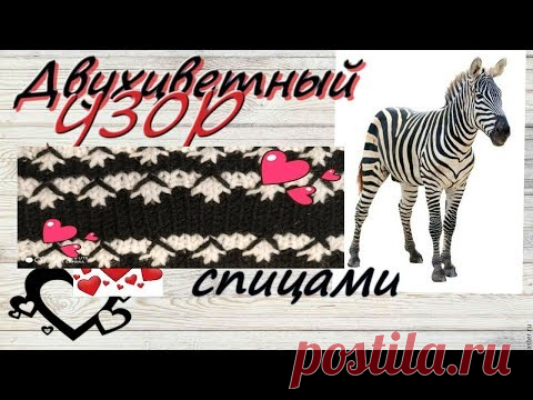 Необычный узор спицами Двухцветный узор Вязание спицами