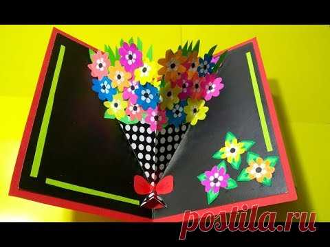 ПОДАРОК ДЛЯ МАМЫ КО ДНЮ 8 МАРТА / ОТКРЫТКА С ЦВЕТАМИ УЧИТЕЛЮ/ поделки из бумаги своими руками
