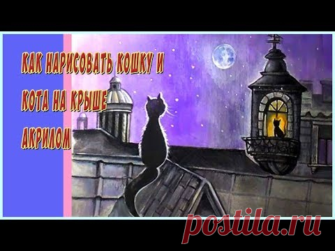 Как нарисовать кошку и кота на крыше акрилом/ Поэтапный видеоурок