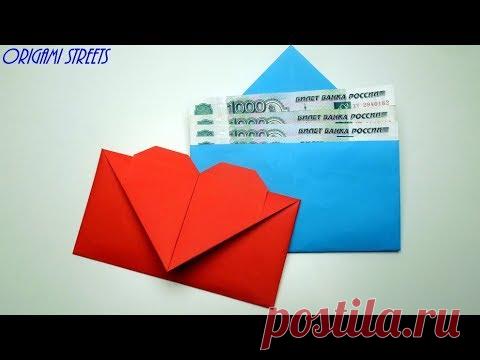 Как сделать кошелёк для денег с сердцем из бумаги.