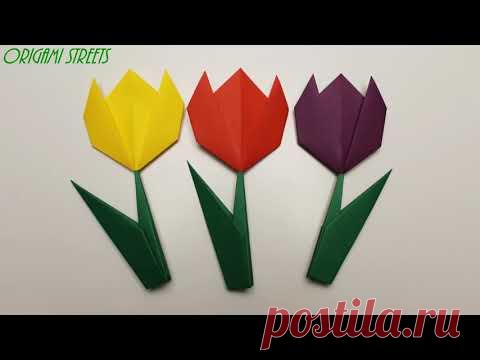 Как сделать тюльпан из бумаги. Оригами тюльпан.