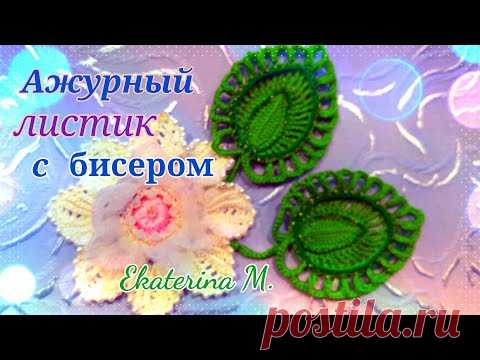 Ажурный листик, для Ирландского кружева Обвязка с люрексом и бисером.