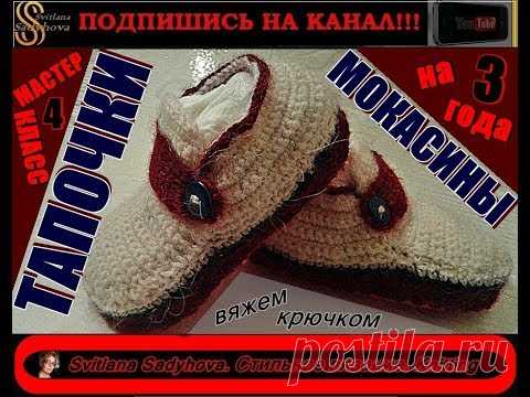 КРАСИВЫЕ Вязаные тапочки - мокасины. МК-4. Подробное обучение!