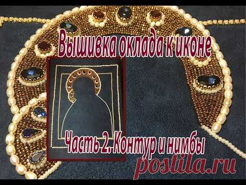 Вышивка оклада к иконе. Часть 2. Контур и нимбы.