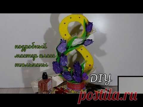 ПОДАРОК МАМЕ на 8 марта DIY Букеты из Тюльпанов своими руками - YouTube