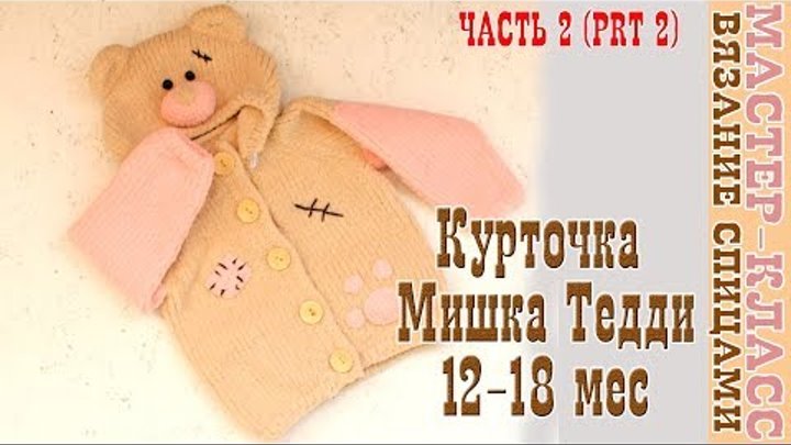 Вязаная Курточка "Мишка Тедди" на возраст 12-18 мес. Плюшевая кофта спицами. Урок 92. Часть 2
