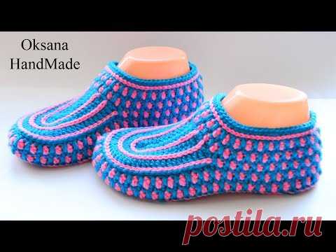 Домашние тапочки следки крючком. Мастер класс. Slippers crochet