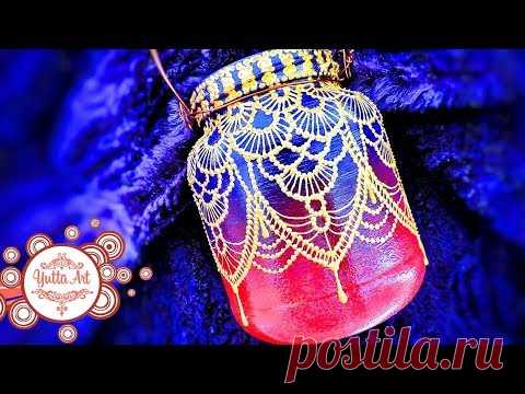 Подсвечник из банки своими руками. Индийский стиль. Мехенди