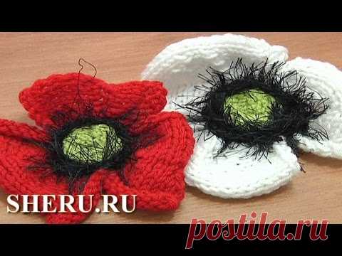 Knitted Poppy Flower Pattern Урок 25 часть 1 из 2 Мак вязаный спицами