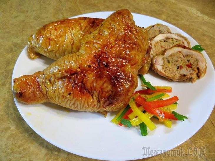 Фаршированные окорочка Ингредиенты: куриные окорочка 4 шт фарш (свинина) 400 гр яйцо 1 шт лук 1 шт сладкий перец 1 шт батон 1\3 (150 гр) для маринада: зелень петрушки паприка 1 ч.лож орегано 1 ч.лож соль, черный перец 1\2 ч.лож растительное масло 1 ст.лож для глазури: мёд 1 ст.лож соевый соус 1 ст.лож