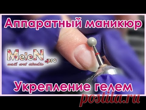 Аппаратный маникюр с укреплением гелем. Дизайн градиент со стразами.