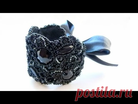 Бижутерия своими руками: вышитый бисером вечерний браслет на лентах. Мастер-класс.