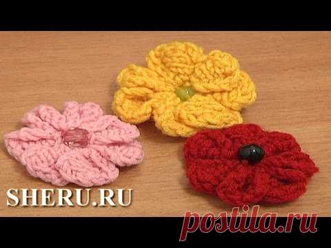 Knitting Flower Tutorial 3 Цветок вязаный спицами