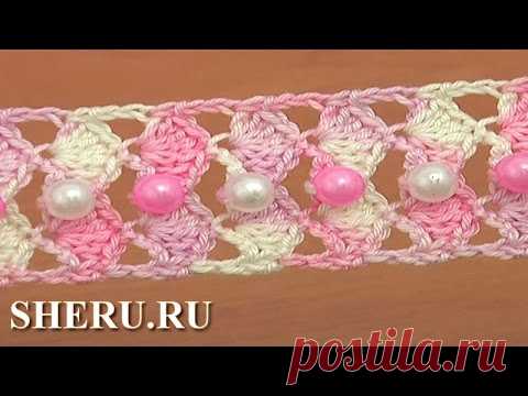 Crochet Beaded Lace Tutorial 24 Лента с разноцветными бусинками