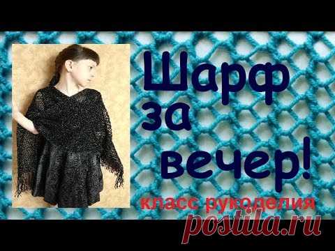 Узор спицами ажурная сетка.Как связать шарф очень быстро.Scarf for the evening.