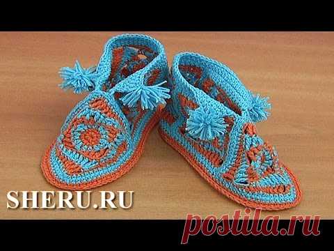 Пинетки крючком на жесткой подошве Урок 42 часть 2 из 2 Вязание