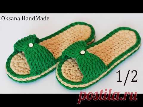 Тапочки крючком из трикотажной пряжи. 1/2 .Вяжем подошву. Slippers crochet