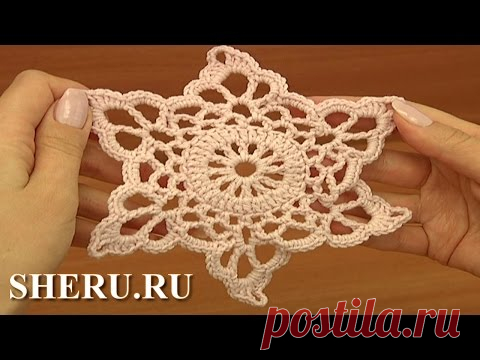 Crochet Snowflake Motif Урок 13 часть 1 из 2 Ажурный мотив в виде снежинки