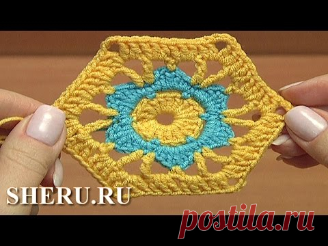 Crochet Motif With Flower Урок 39 часть 1 из 2 Шестиугольный мотив с цветком