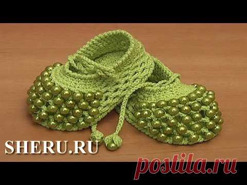 Вязаные пинетки крючком для лета Урок 81 часть 1 из 2 Crochet Shoes for Baby