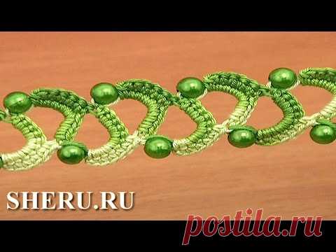 Easy To Crochet Lace Урок 20 Узкая ленточка с бусинками