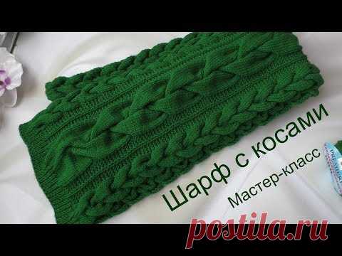 Шарф с объёмными косами./// Подробный МК./// Схемы узоров.