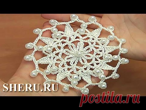 Вязание крючком снежинки с бусинками Урок 33