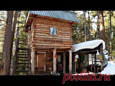 Hike in the woods to a 2-story log cabin - 2