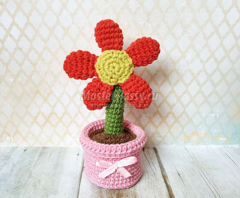 Подарок к 8 марта в виде горшочка с цветком: пошаговый мастер-класс с фото. Как связать цветок