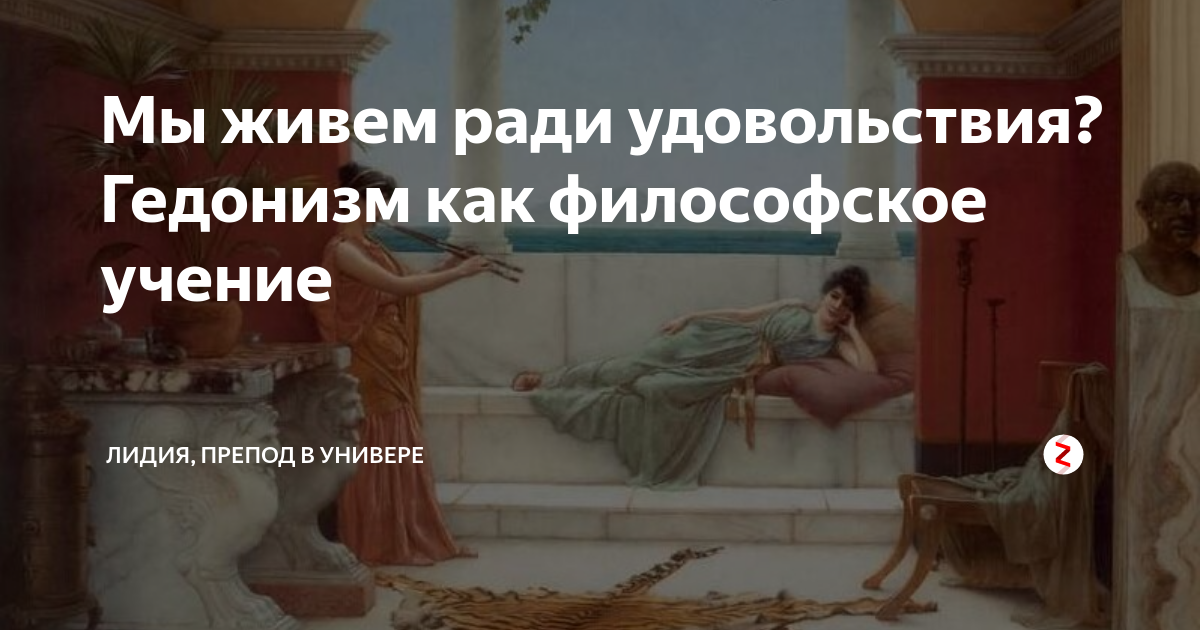 Мы живем ради удовольствия? Гедонизм как философское учение В пору расцвета античной культуры в Древней Греции возникли интересные философские учения морального характера. В них рассматривался вопрос смысла жизни человека и давались советы, как прожить свою жизнь так, чтобы не было мучительно больно за бесцельно прожитые годы.